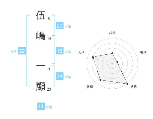 伍嶋 一顯さんを姓名の画数から五運を鑑定