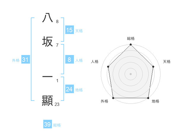 八坂 一顯さんの総格は39画の5点!