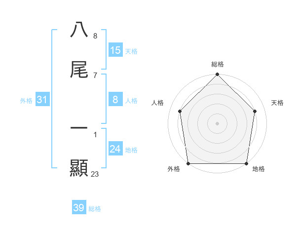 八尾 一顯さんの総格は39画の5点!