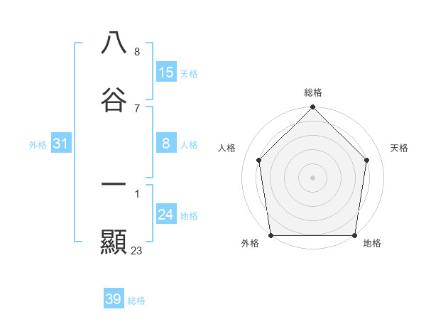八谷 一顯さんの総格は39画の5点!