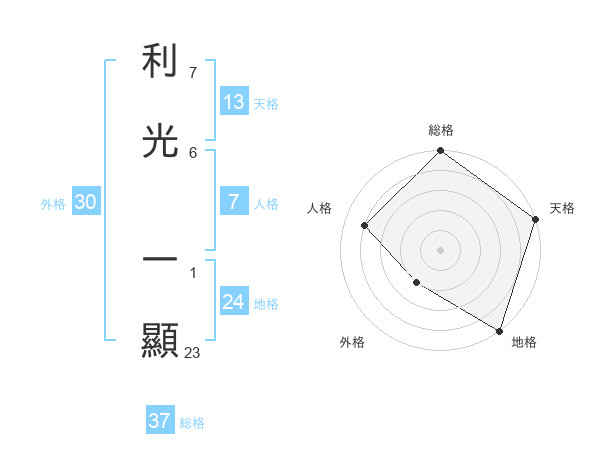 利光 一顯さんの総格は37画の5点!
