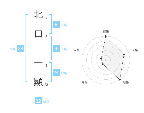 北口 一顯さんの総格は32画の5点!