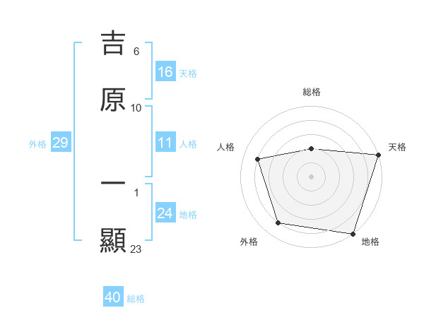吉原 一顯さんの天格は16画の5点!