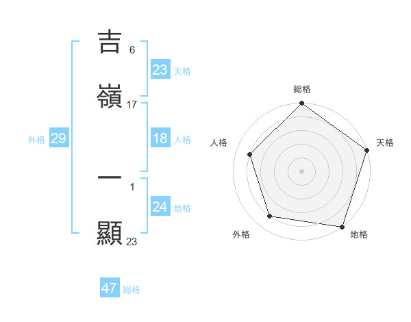 吉嶺 一顯さんの総格は47画の5点!