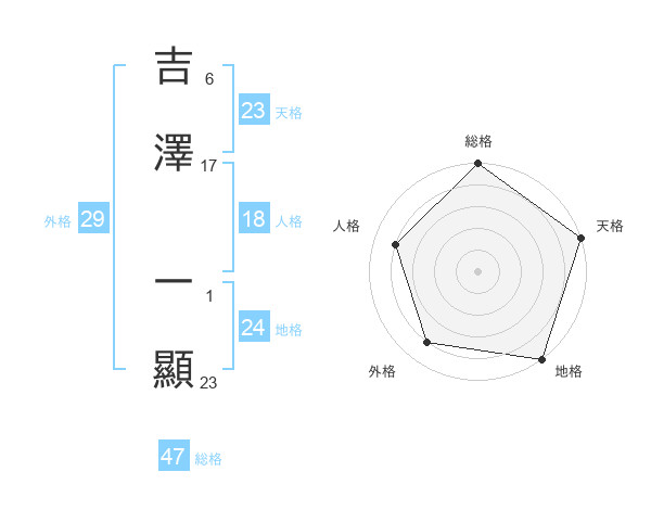 吉澤 一顯さんの総格は47画の5点!