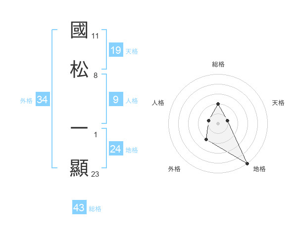 國松 一顯さんの総格は43画の2点!