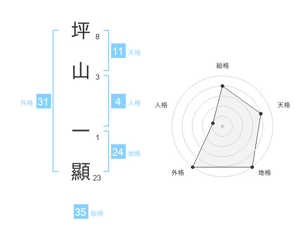 坪山 一顯さんの総格は35画の4点!
