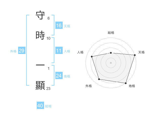 守時 一顯さんの総格は40画の2点!