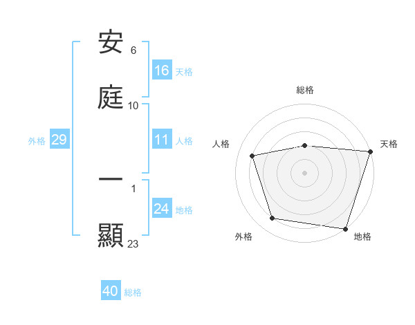 安庭 一顯さんの総格は40画の2点!
