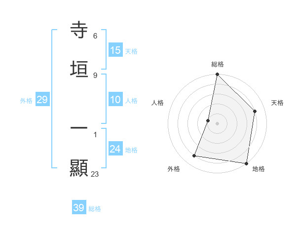 寺垣 一顯さんの総格は39画の5点!