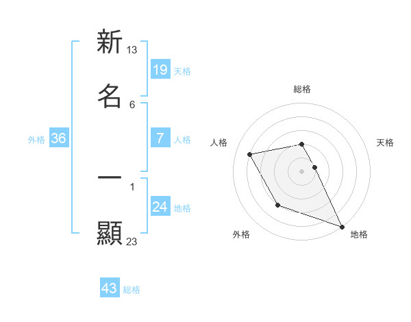 新名 一顯さんの外格は36画の3点!