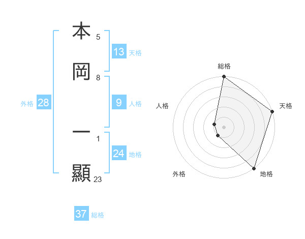 本岡 一顯さんを姓名の画数から五運を鑑定