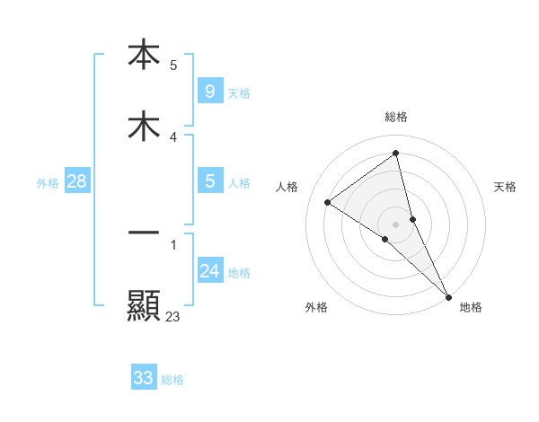 本木 一顯さんの総格は33画の4点!