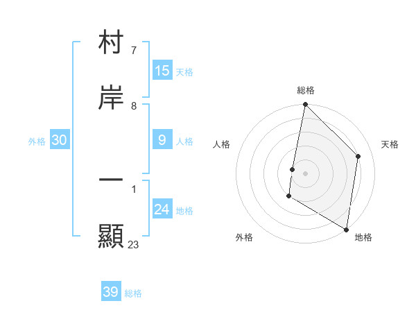 村岸 一顯さんの総格は39画の5点!