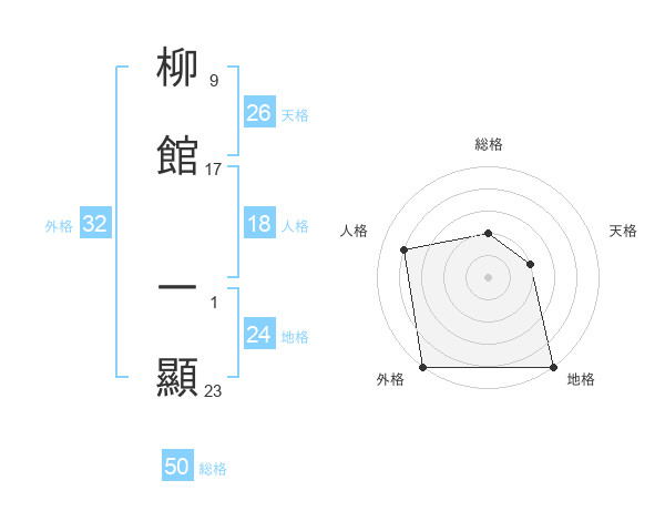 柳館 一顯さんの総格は50画の2点!