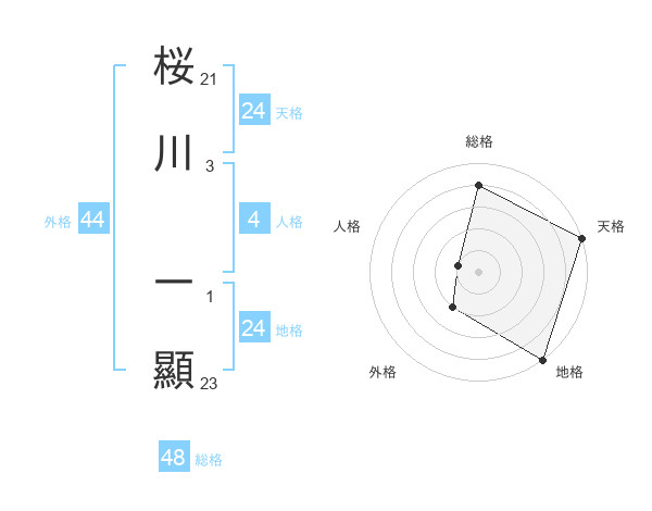 桜川 一顯さんの総格は48画の4点!