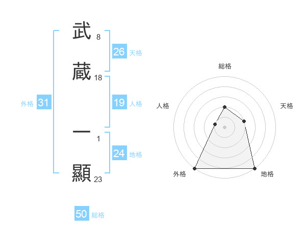 武蔵 一顯さんの総格は50画の2点!