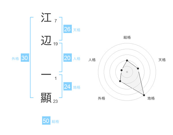 江辺 一顯さんの総格は50画の2点!