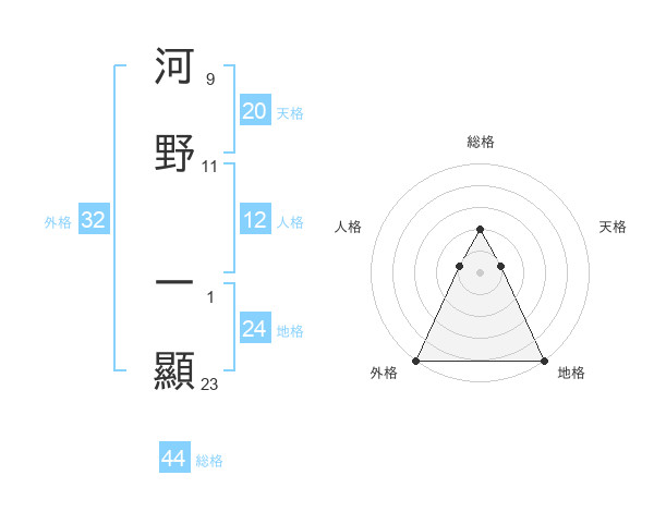 河野 一顯さんの総格は44画の2点!