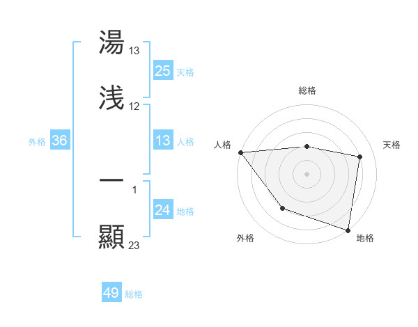 湯浅 一顯さんの天格は25画の4点!