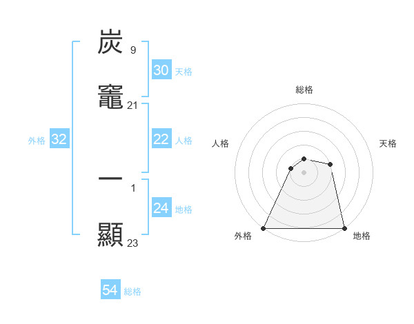 炭竈 一顯さんの総格は54画の1点!