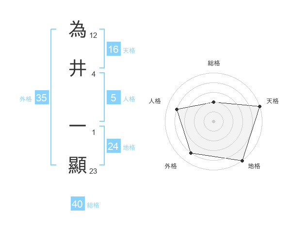 為井 一顯さんの天格は16画の5点!