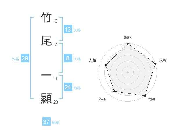 竹尾 一顯さんの総格は37画の5点!