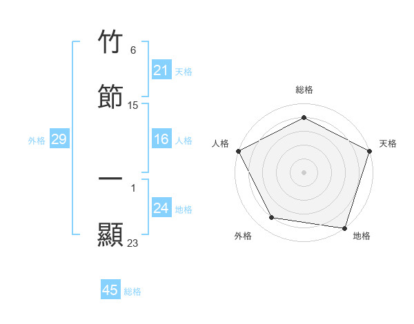 竹節 一顯さんの総格は45画の4点!