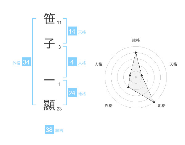 笹子 一顯さんの総格は38画の4点!
