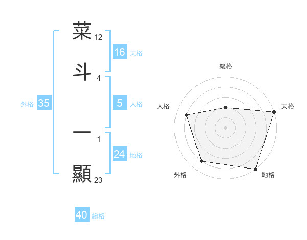 菜斗 一顯さんの地格は24画の5点!