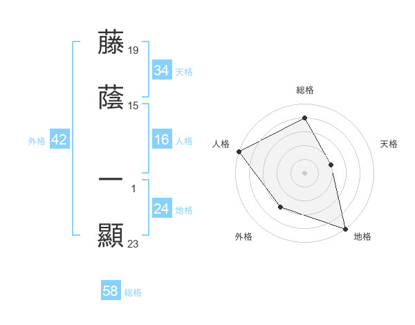 藤蔭 一顯さんの総格は58画の4点!
