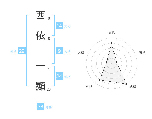 西依 一顯さんの総格は38画の4点!