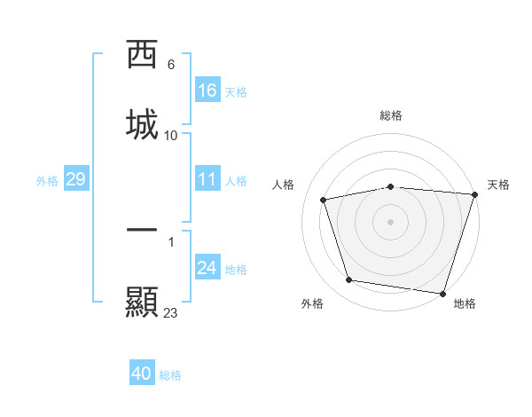 西城 一顯さんの総格は40画の2点!
