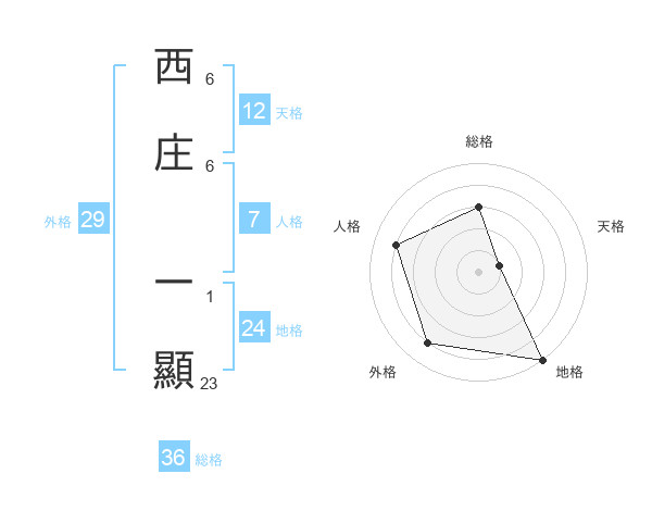 西庄 一顯さんの天格は12画の1点!