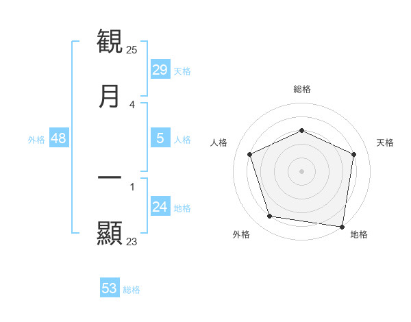 観月 一顯さんの総格は53画の3点!