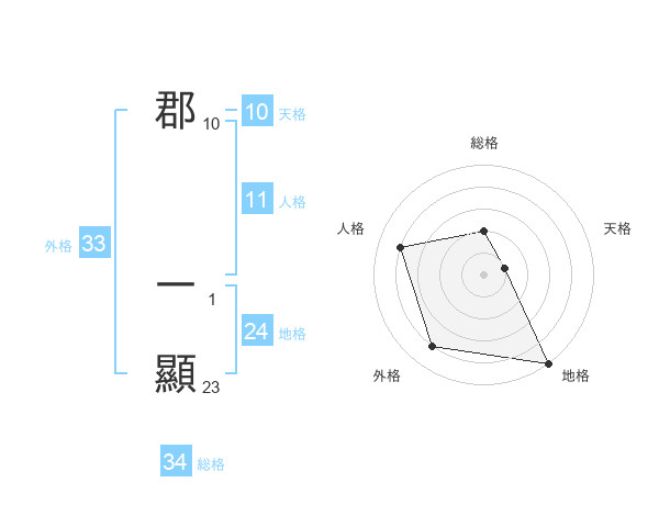 郡 一顯さんの外格は33画の4点!