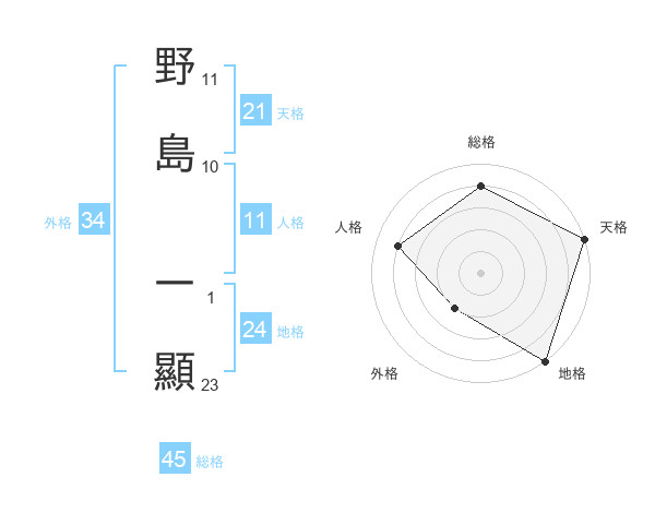 野島 一顯さんの総格は45画の4点!