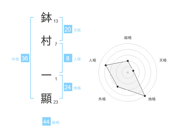 鉢村 一顯さんの総格は44画の2点!