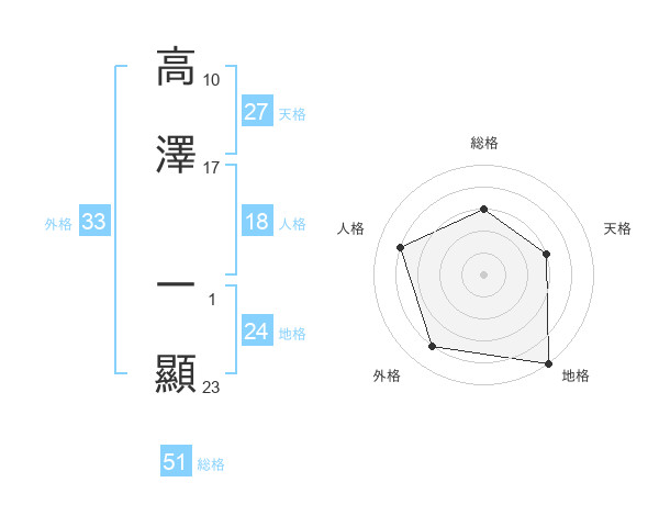 高澤 一顯さんを姓名の画数から五運を鑑定