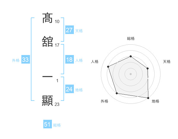 髙舘 一顯さんの総格は51画の3点!