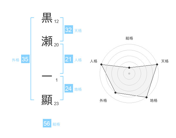 黒瀬 一顯さんの天格は32画の5点!
