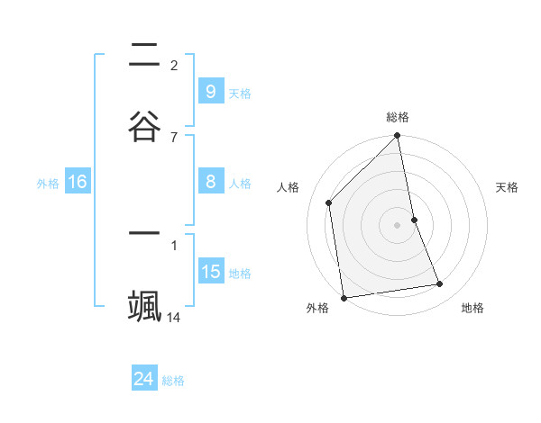 二谷 一颯さんの総格は24画の5点!