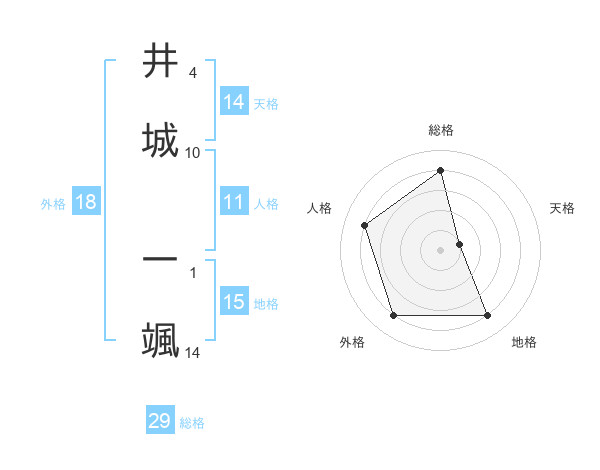 井城 一颯さんの総格は29画の4点!
