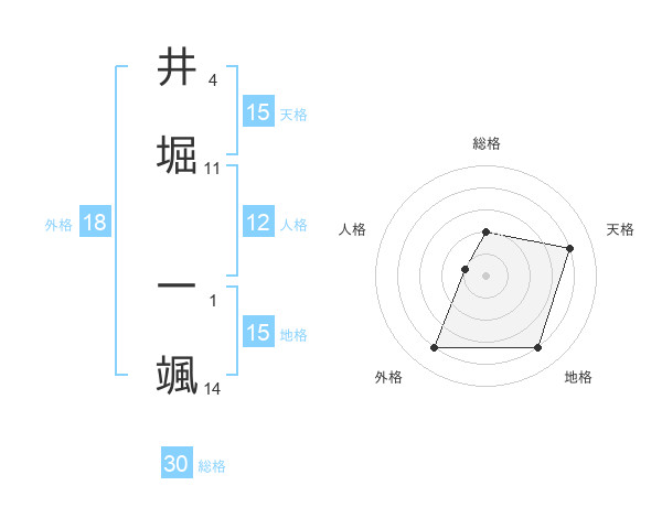 井堀 一颯さんの天格は15画の4点!