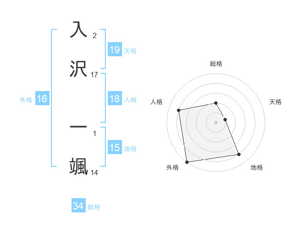 入沢 一颯さんの総格は34画の2点!