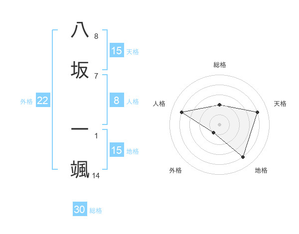 八坂 一颯さんの外格は22画の1点!
