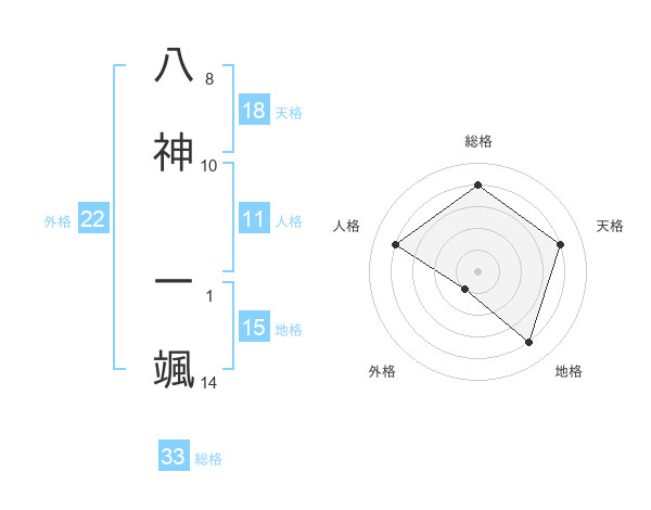 八神 一颯さんの総格は33画の4点!