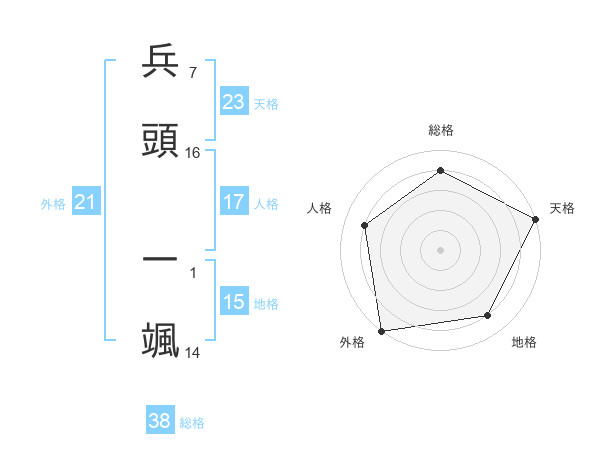 兵頭 一颯さんの天格は23画の5点!