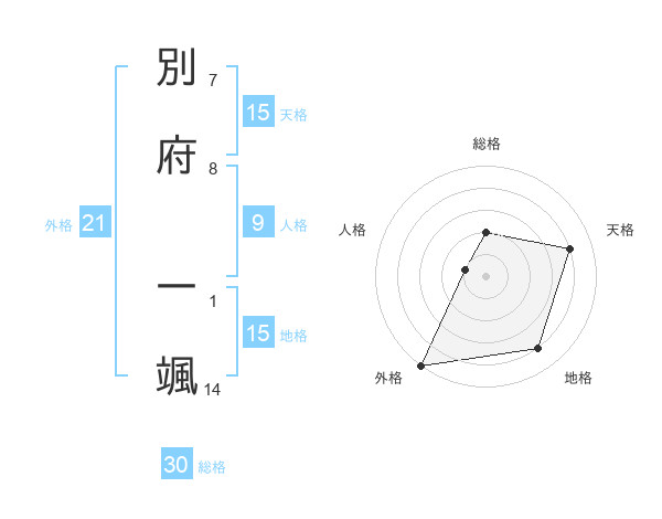 別府 一颯さんの外格は21画の5点!