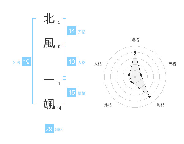 北風 一颯さんの総格は29画の4点!